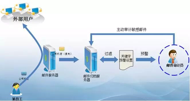 如公司某員工發(fā)現(xiàn)近期部門很多內(nèi)部資料莫名其妙的外泄,可通過郵件審計員查資料可快速的找出元兇,如圖流程演示: