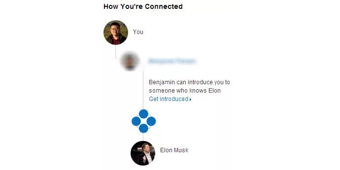 或者,如果你中意于特斯拉(Tesla)汽車的設(shè)計(jì),而對(duì)創(chuàng)始人埃隆·馬斯克(Elon Musk)產(chǎn)生濃厚的興趣。說(shuō)不定,你的朋友恰恰就認(rèn)識(shí)埃隆·馬斯克,而他就可以幫你和這個(gè)傳奇的公司創(chuàng)始人和CEO建立某種聯(lián)系。埃隆·馬斯克出生在南非,18歲移民到美國(guó),是全球最大的網(wǎng)上支付公司PayPal,SpaceX(空間探索技術(shù)公司),特斯拉汽車,以及SolarCity四家公司的CEO。