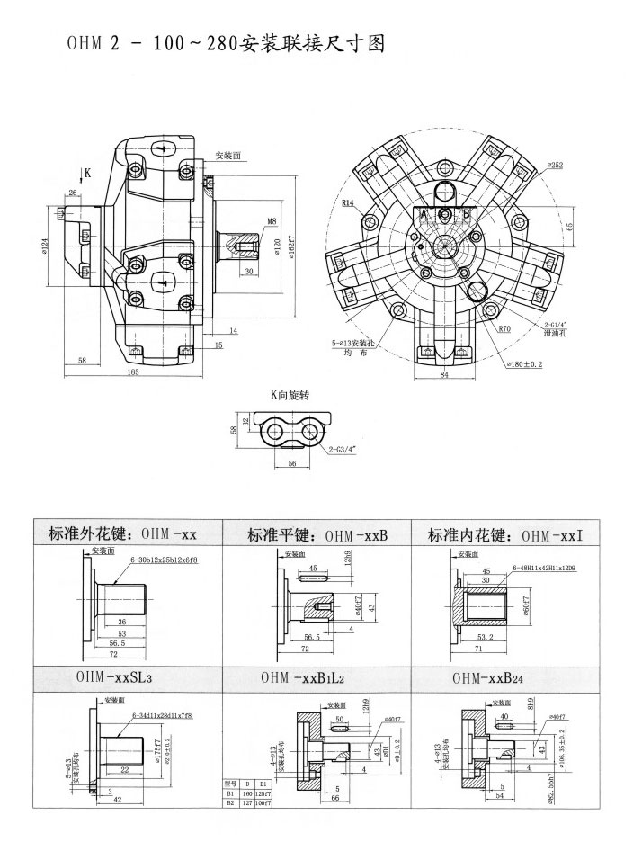 | Type   OHM | Displacent(ml/r) | 額定壓力 | 最高壓力 | 額定扭矩 | 單位理論扭矩 | Sped ange(r/min) | Weight(kg) |