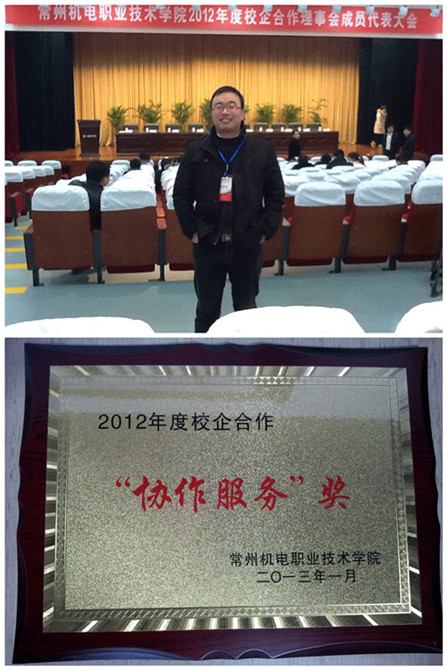 1月27日,我公司仲旭峰副總經(jīng)理應(yīng)邀參加常州機電職業(yè)技術(shù)學(xué)院2012年度校企合作理事會代表大會。常州市人民政府副秘書長孫如山、常州市教育局黨委書記潘建中、武進區(qū)副區(qū)長王明昌等一同出席了會議,并為2012年度合作優(yōu)秀的企業(yè)頒發(fā)了相關(guān)獎項。