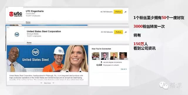 比如說,如何通過關(guān)注客戶的Company Page,時時了解客戶的動態(tài),從而和客戶有更多話題?如何通過一個客戶找到更多個實力相當(dāng)?shù)钠渌蛻簦咳绾卫蒙缃黄脚_LinkedIn等將展會效果最大化?(N+1, 傳統(tǒng)B2B與社交平臺的結(jié)合)