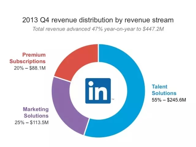 (圖1 2013年LinkedIn公司Q4營(yíng)收中市場(chǎng)營(yíng)銷占到25%)