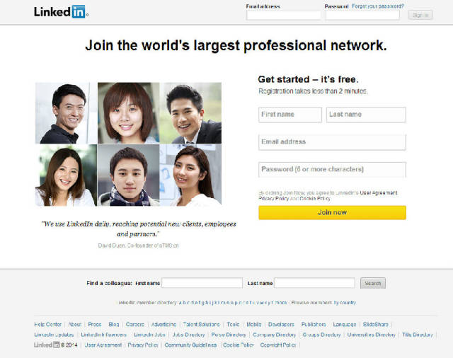 在LinkedIn的首頁(yè)上,寫著“加入全球最大的職業(yè)社交網(wǎng)絡(luò)吧”。那么這是一個(gè)怎樣的職業(yè)社交網(wǎng)絡(luò)呢?
