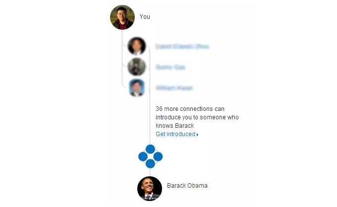 甚至,如果你想賣給奧巴馬一個(gè)圓珠筆,可能都能找到給你們牽線搭橋的人。從LinkedIn中,你甚至可以找到某個(gè)人脈關(guān)系,能幫助你在美國(guó)總統(tǒng)之間建立某種聯(lián)系。