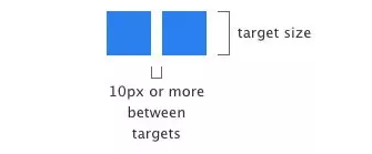 另外一個(gè)需要考慮的是就是可觸摸控件指尖的距離。如果兩個(gè)按鈕比較靠近,那么用戶在移動(dòng)端上就很容易出現(xiàn)誤觸的情況了。如果想要解決這個(gè)問(wèn)題,就需要根據(jù)實(shí)際情況重新調(diào)整尺寸和按鈕之間的距離,以適應(yīng)用戶手指交互的需求。下面是推薦的尺寸設(shè)定。