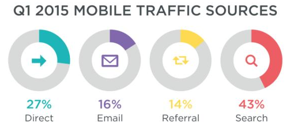 讓網(wǎng)站對移動端更友好,不僅對谷歌和消費者來說是件好事——網(wǎng)站運營方同樣會受益。對于專門針對移動設(shè)備優(yōu)化的網(wǎng)站來說,搜索會將大量用戶吸引至移動端站點,為網(wǎng)站的收入做出重大貢獻(xiàn)。根據(jù)品牌研究機(jī)構(gòu) Branding Brand 對 100 家熱門移動網(wǎng)站的 調(diào)查,2015 年第一季度,搜索占到所有智能手機(jī)流量的近一半,比 2014 年第四季度增長 5%。此外,在針對智能手機(jī)進(jìn)行優(yōu)化的網(wǎng)站當(dāng)中,自生搜索(organic search)占到其營收總額的 25%。